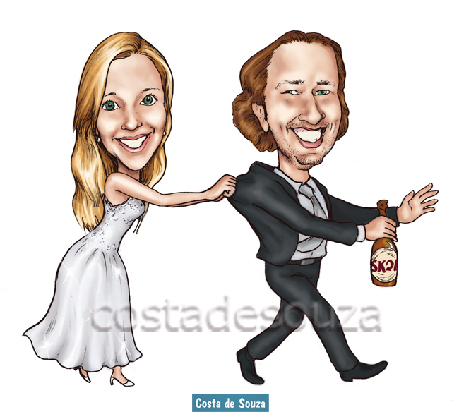 Caricaturas ao vivo num casamento em Blumenau, em julho. Esta arte diverte e promove interação entre os convidados, além de proporcionar um registro para lembrar da festa com carinho e bom humor. Desenho de 15 a 20 pessoas por hora.