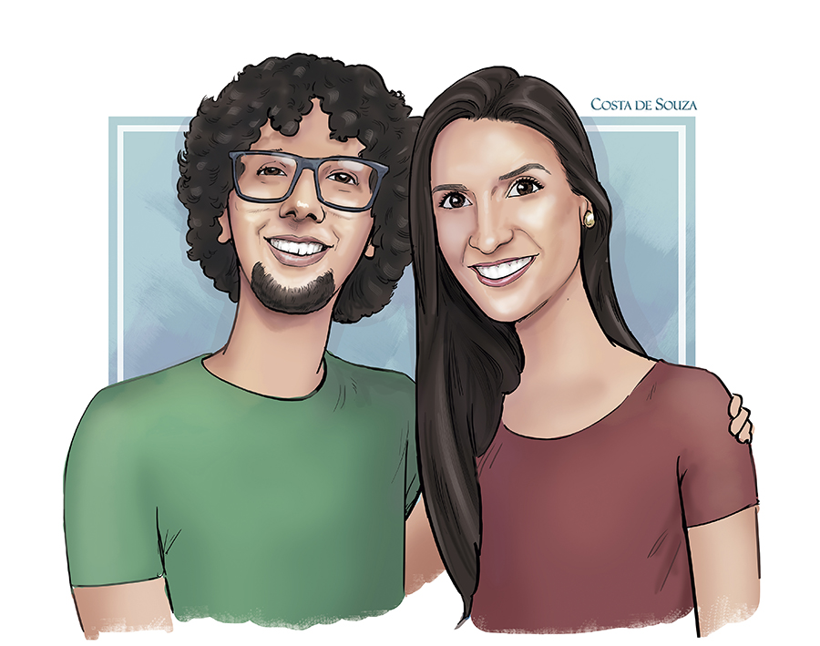 Minha irmã, Maeve, estava de aniversário ontem e infelizmente esse ano não pude ir passar com ela essa data especial. Dei de presente essa caricatura de nós dois abraçados, como espero que possamos estar em breve.