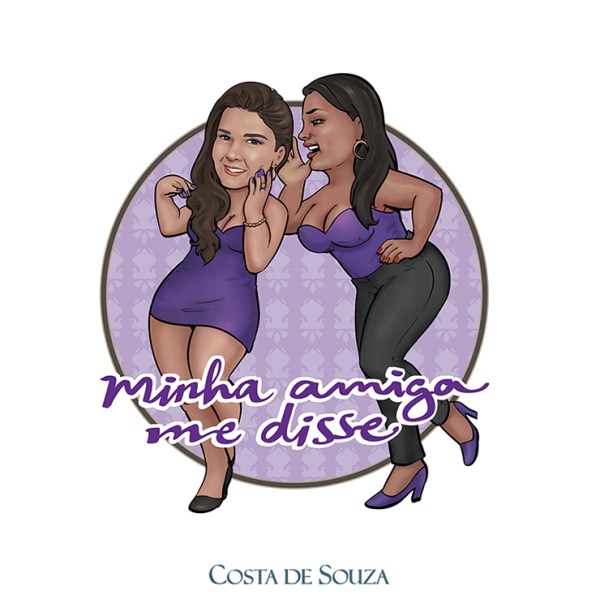 The clients asked me to draw the pose as they were sharing a secret, and with purple and black as the main colors in the composition, including their clothes.