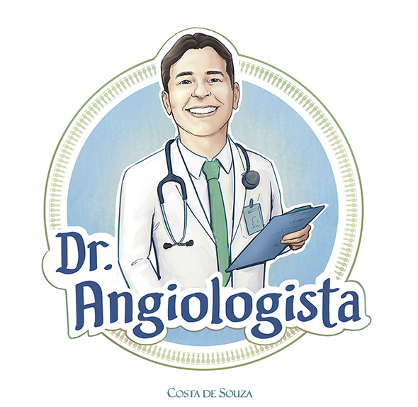 Logo design with caricature for the Dr.Angiologista brand. Developed for use in all the marketing pieces such as social media profile, posts, ads and other digital and print media.