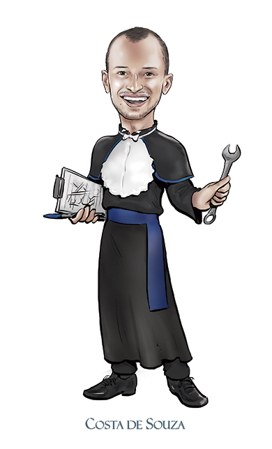 Caricatura para formatura em Engenharia Mecânica. Encomenda na opção Em Preto-e-Branco, completa.