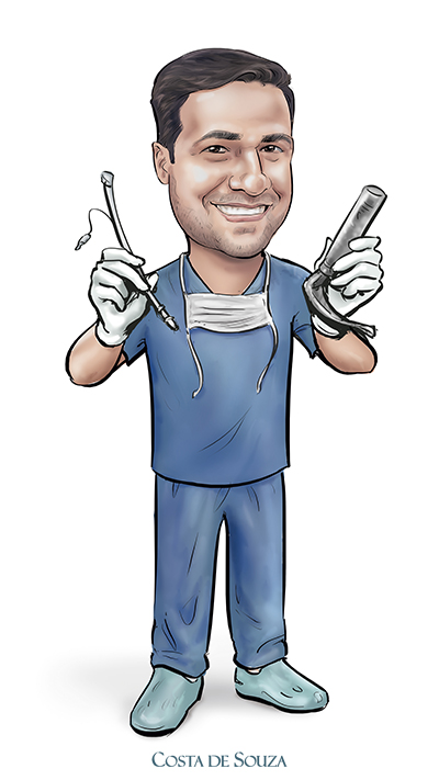 Caricatura para formatura de Medicina, para formando que deseja se especializar em Cirurgia.