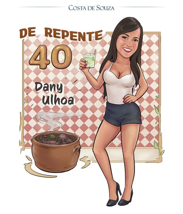 Caricatura para festa de aniversário de 40 anos com tema feijoada. Encomenda na opção Colorida, completa.