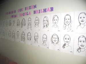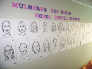Ontem o dia foi de caricatura ao vivo só para mulheres no Sesi Escola em Blumenau.  As colaboradoras receberam os desenhos como parte das homenagens de 8 de março e, por um dia, todas as caricaturas ficaram expostas neste mural na entrada da escola.