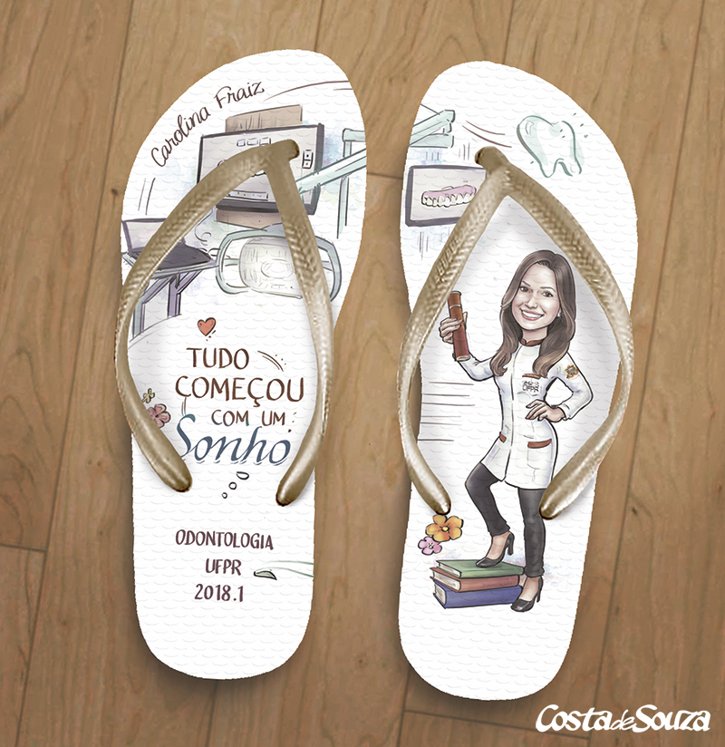 Caricatura por encomenda para formatura de Odontologia. A cliente pediu que o desenho fosse desenvolvido principalmente para a aplicação em chinelos.
