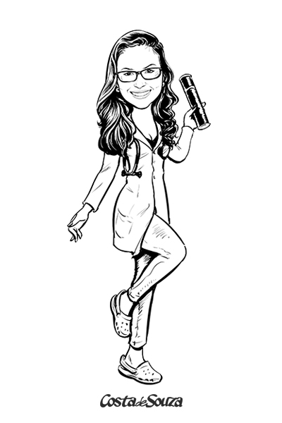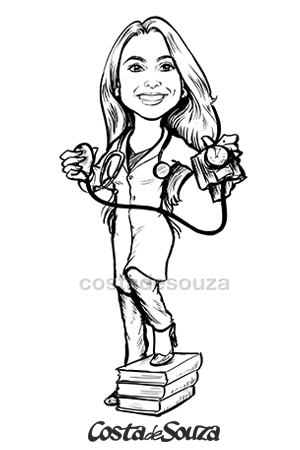 Caricatura em preto-e-branco para formatura de Medicina. Encomenda na opção Sem Adicionais.