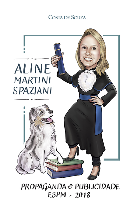 Caricature for marketing and visual identity, to be used alongside the logotype, in social media posts, and also in several graphic pieces such as business card, folders and other advertising materials.