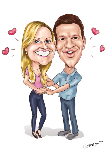 Esse desenho foi aprovado e a cliente imprimiu e emoldurou a caricatura para presentear o namorado.