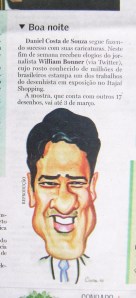 – Show! – foi o que disse William Bonner. A considerar o volume de mensagens que ele recebe, o fato de ter parado pra ver a caricatura que fiz dele e respondido à mensagem, dia 21, pra mim foi uma surpresa.