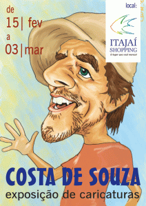Itajaí foi a cidade onde vivi quase todos os momentos dos meus primeiros 22 anos, por isso a alegria e a dedicação pra apresentar bons trabalhos vêm com toda força agora. No Itajaí Shopping, de 15 de fevereiro a 3 de março, estarão minhas caricaturas mais recentes, pra visitação aberta ao público, com a vantagem de você poder passar lá à noite e aos fins de semana.