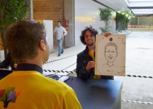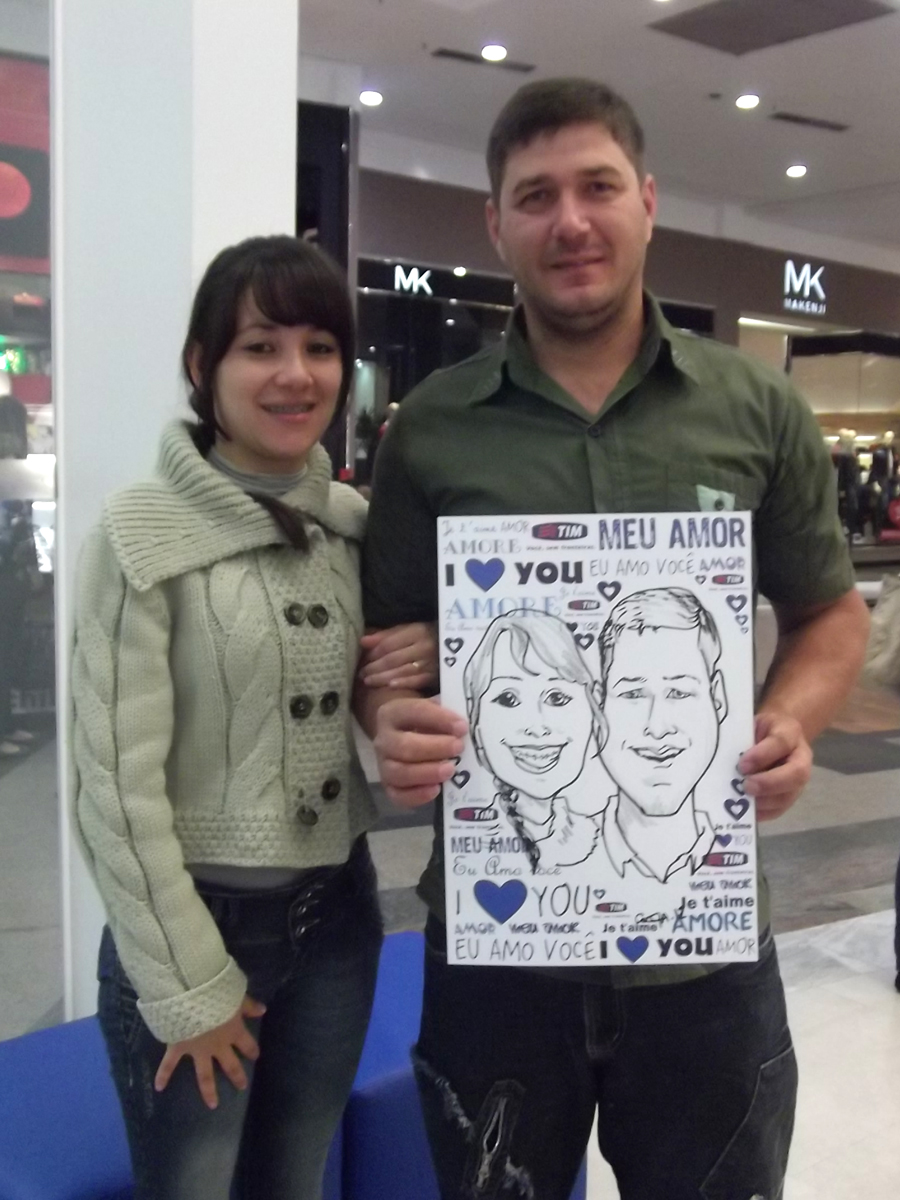 Caricaturas ao vivo na Festa da Cumeeira do novo shopping Park Europeu, em Blumenau, neste sábado. Trabalho em equipe com outros profissionais de Santa Catarina reunidos para atender o grande público (da esquerda para a direita: César Nogueira, ManoHead e Darlion Amorim). Um dia de muita diversão com os colegas de traço e os convidados da inauguração da estrutura do shopping para os lojistas.