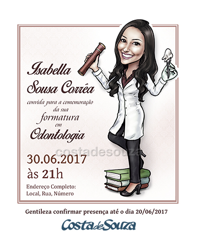 Caricatura com design de convite para formatura de Odontologia.