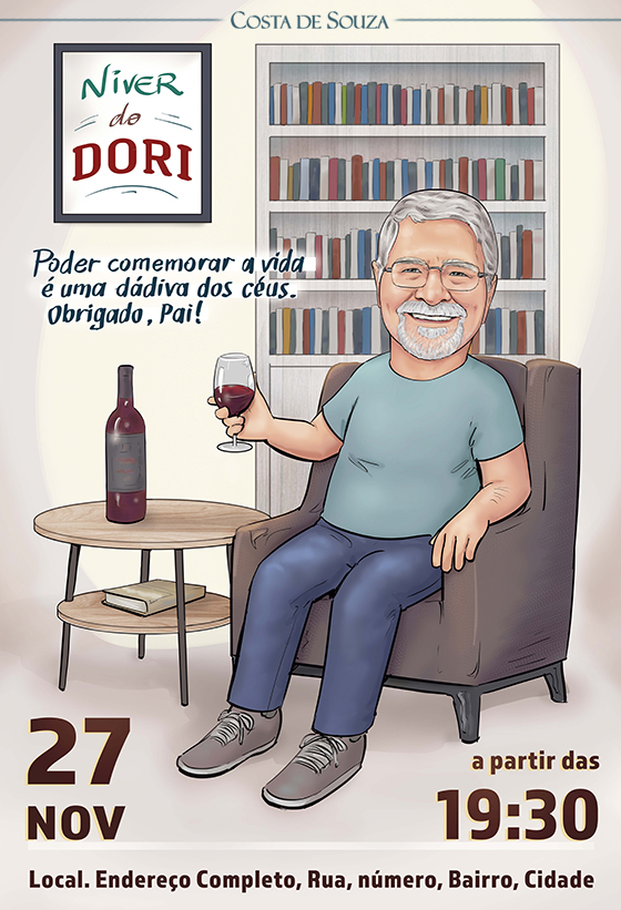 Como já tinha encomendado uma caricatura comigo em outra ocasião, a cliente pediu que desta vez eu desenvolvesse uma arte sem caricatura, com uma ilustração focada no tema da festa.