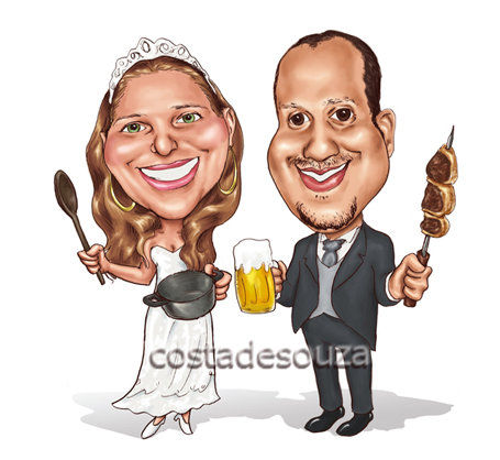 Caricatura para formatura de Medicina, encomendada para presentear como quadro. A formanda é bombeira, e o uniforme foi destacado por baixo do jaleco.